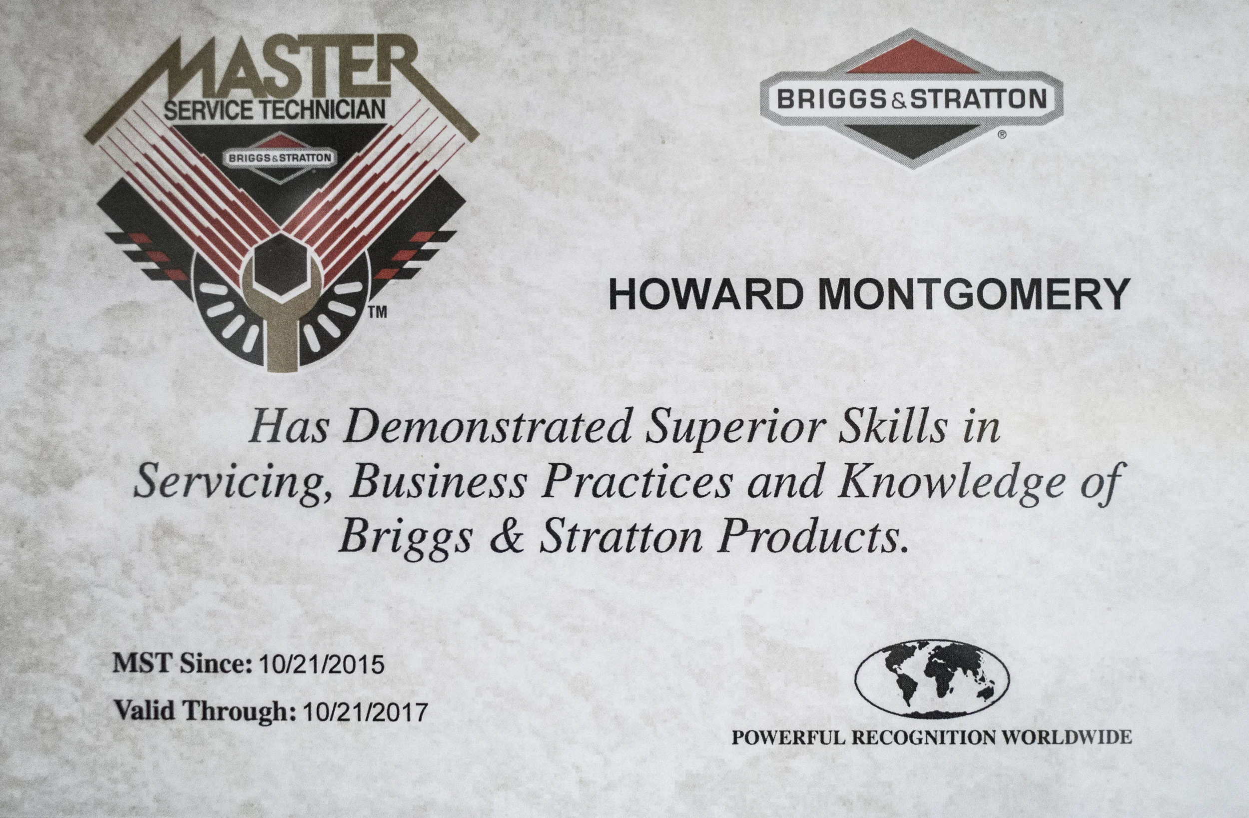 We are certified by Briggs & Stratton and Kohler Engines and will work on just about anything you bring us. We want you to leave happy. We are Jomonty Small Engine.